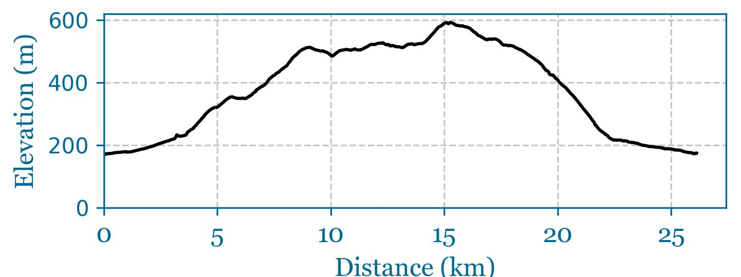 26km, 480m of climbing Route Overview Map Ride Through GPX