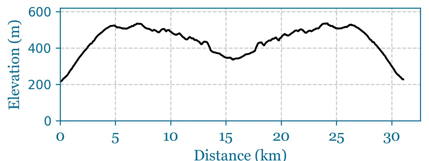 31.8km, 680m of climbing Route Overview Map Ride Through GPX